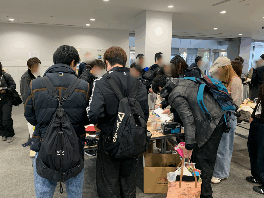 イベントが始まると、すぐに大勢の学生が集まり、品物が見えないほどの賑わいとなりました。法政学生の皆さんから集めた不要品は、机3個分にも収まりきらないほどの量で、ご協力いただいた皆様、本当にありがとうございました。